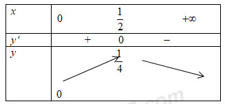 Xét \(y = x – {x^2} \Rightarrow y’ = 1 – 2x = 0 \Leftrightarrow x = \frac{1}{2}\)