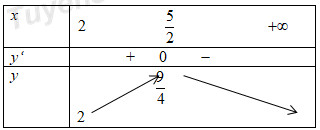 Xét \(y = – {x^2} + 5x – 4 \Rightarrow y’ = – 2x + 5 = 0 \Leftrightarrow x = \frac{5}{2}\)