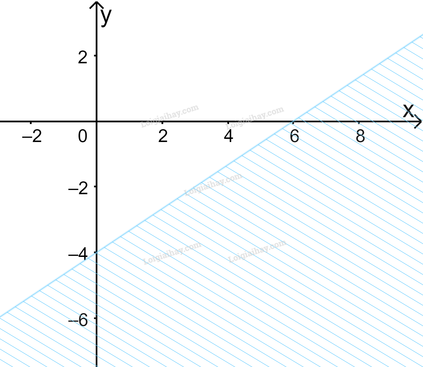+ Vì \(0 – 3.0 – 7 = – 7 < 0\) nên \(O(0;0)\) không thuộc miền nghiệm