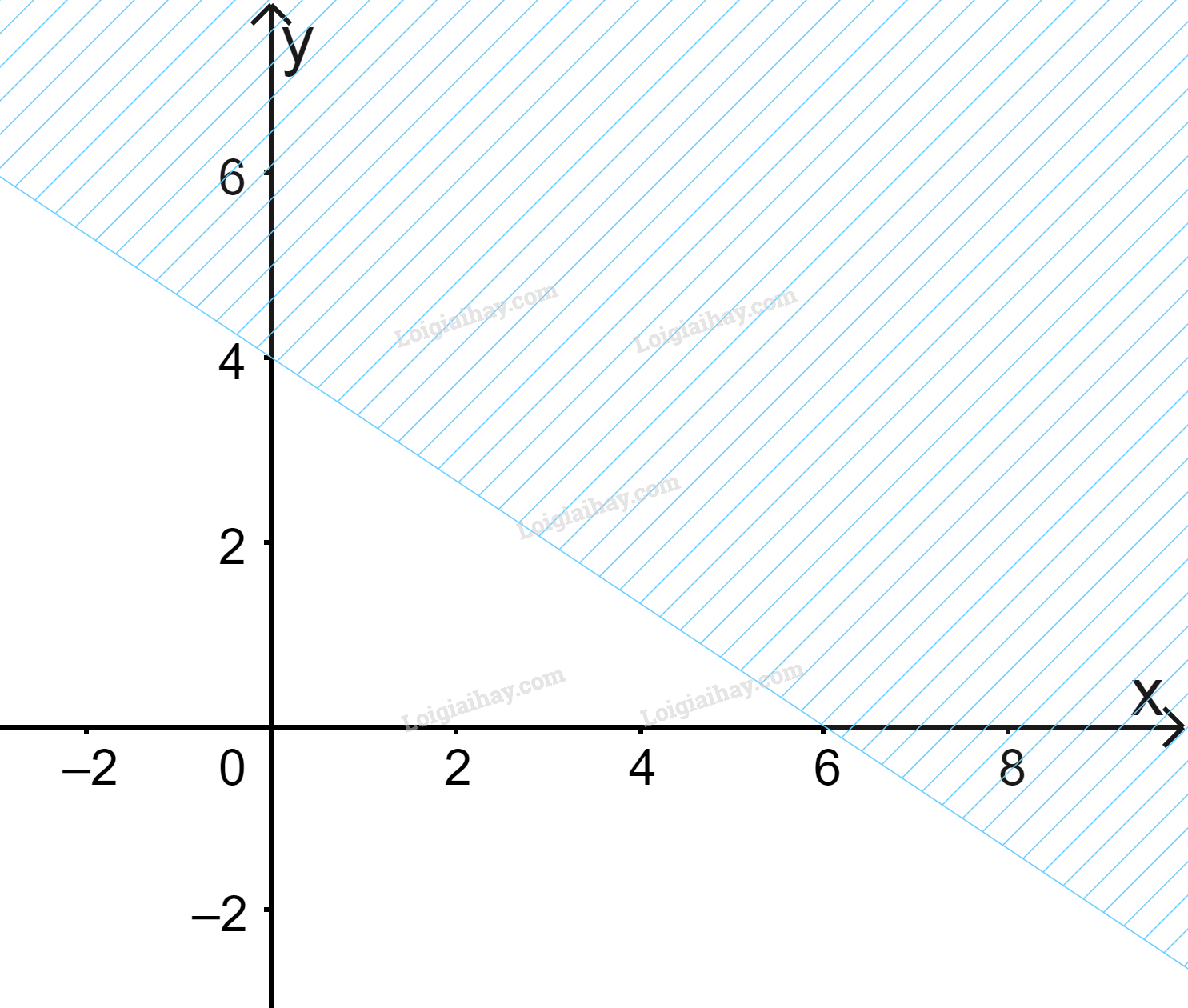 Biểu diễn miền nghiệm trên hệ trục Oxy, ta được: