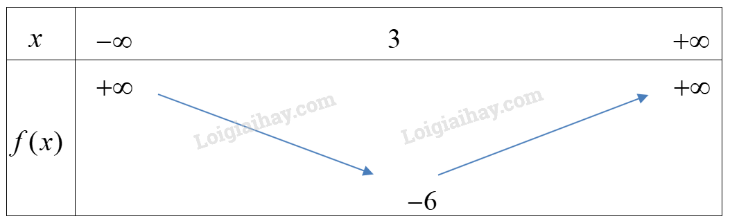Xét hàm số \(f(x) = {x^2} – 6x + 3\), có \(a = 1 > 0,b = – 6\)
