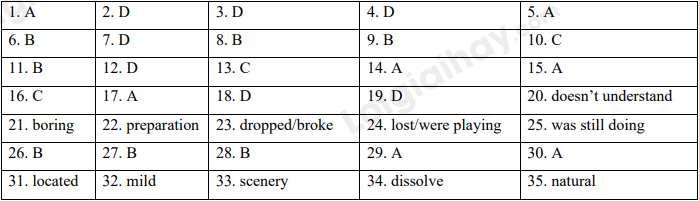 Choose the best answer A, B, C or D to complete the sentences.