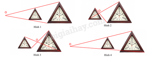 Trong các hình trên, chỉ có hình 1 biểu diễn đúng tâm phối cảnh của cặp hình đồng dạng này.