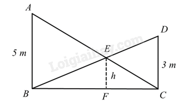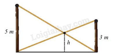 Có hai chiếc cột dựng thẳng đứng trên mặt đất với chiều cao lần lượt là 5 m và 3 m. Người ta nối hai sợi dây từ đỉnh cột này đến chân cột kia và hai sợi dây cắt nhau tại một điểm. Tính độ cao ℎ của điểm đó so với mặt đất.