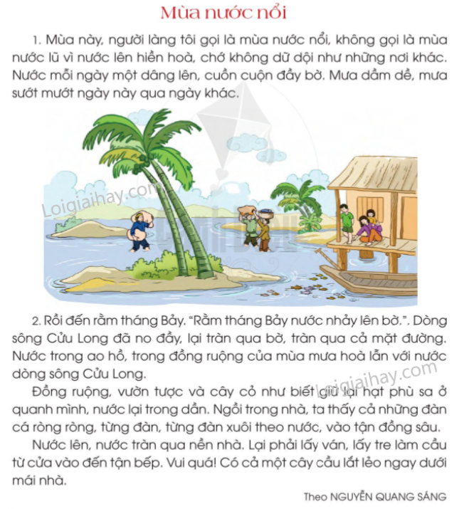 Giải Bài 29: Đọc: Mùa nước nổi SGK Tiếng Việt 2 tập 2 Cánh diều với đầy đủ lời giải tất cả các câu hỏi và bài tập phần đọc, viết, luyện từ và câu, kể chuyện,….