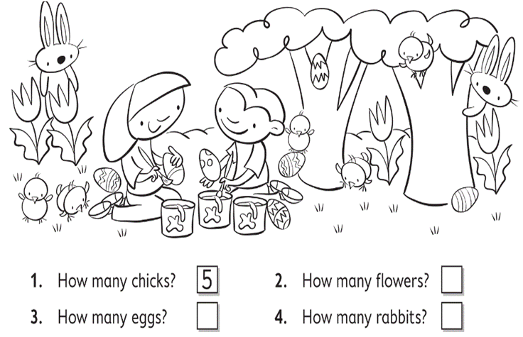 1. How many chicks? (Có bao nhiêu con gà con?)