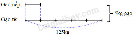 Đề bài: Một cửa hàng có 125 kg gạo tẻ. Khối lượng gạo tẻ gấp 5 lần khối lượng gạo nếp. Hỏi cửa hàng đó có tất cả bao nhiêu ki-lô-gam gạo nếp và gạo tẻ ?