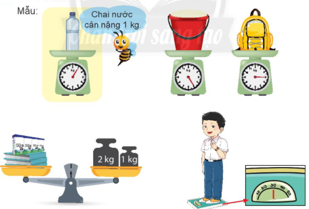 Em quan sát tranh rồi xác định cân nặng của mỗi vật có trong hình vẽ.