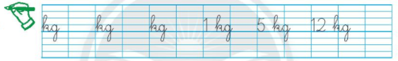 Em quan sát ví dụ mẫu rồi viết lại các độ dài trên với đơn vị ki-lô-gam vào vở.