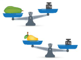 Quan sát tranh ta thấy đĩa cân bên nào thấp hơn thì câng nặng vật đó nhẹ hơn.