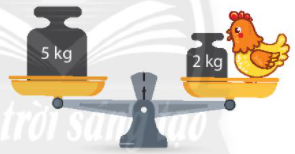 Từ đó em xác định được cân nặng con gà bằng 5 kg – 2 kg.