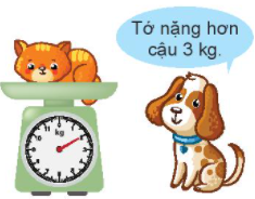 Con chó nặng hơn con mèo 3 kg nên cân nặng của con chó bằng 2 kg + 3 kg.