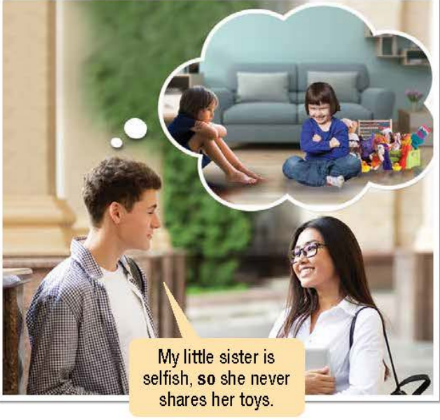 6 – c: selfish = thinking about themselves more than other people