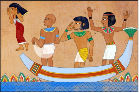 Em vẽ hoạt động đua thuyền của người Ai Cập cổ đại: