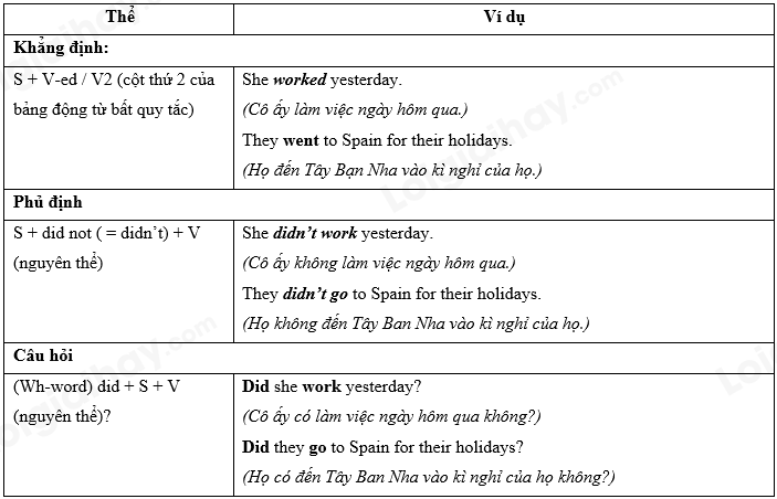 2. Cấu trúc thì quá khứ đơn với động từ thường