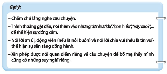 Thể hiện sự sẵn sàng lắng nghe người thân chia sẻ theo gợi ý sau: