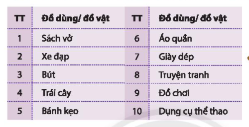 Kể một số vật dụng em có như cầu mua sắm. Phân loại các vật dụng đó thành hai nhóm: cái mình cần, cái mình muốn và sắp xếp theo thứ tự ưu tiên.