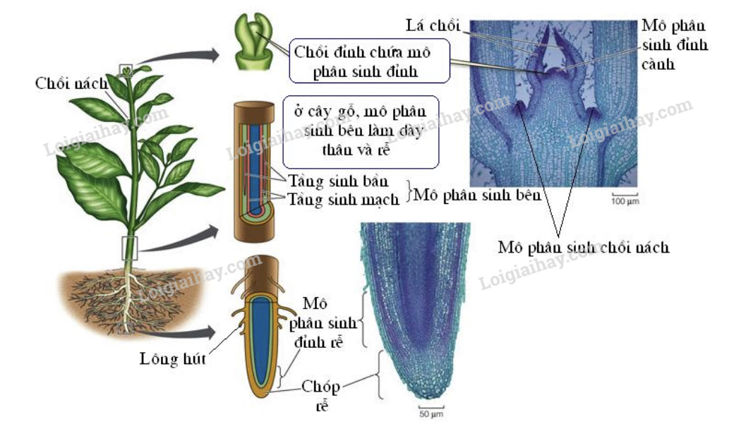 • Sinh trưởng sơ cấp là kết quả hoạt động của mô phân sinh đỉnh và mô phân sinh lóng dẫn đến sự gia tăng chiều cao cây và chiều dài rễ.