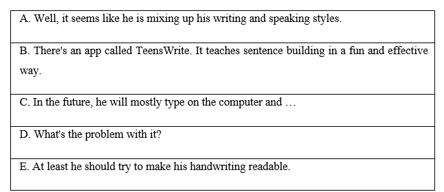 Lam: Hold on. (5) There’s an app called TeensWrite. It teaches sentence building in a fun and effective way. How about asking him to try it?