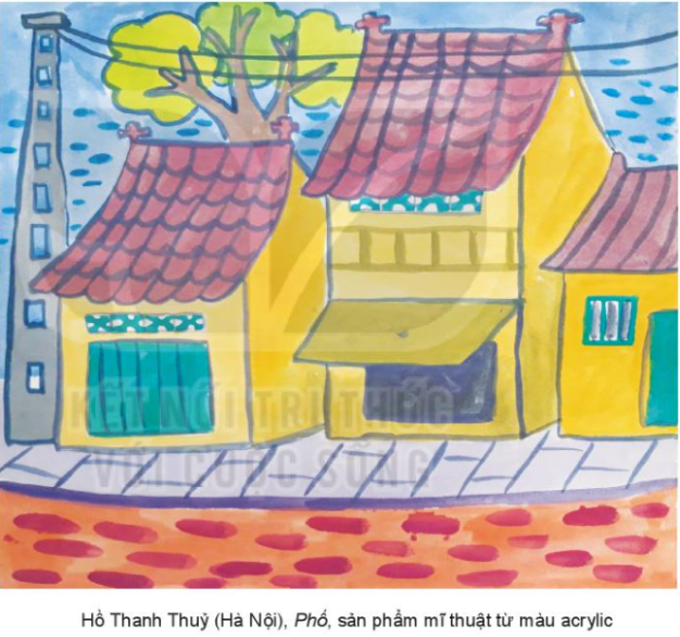 – Trong bài của bạn Thủy, bức tranh được thể hiện bằng những hình ảnh như những ngôi nhà cổ với mái ngói đỏ, tường vàng, tiêu biểu cho những ngôi nhà ở làng quê Việt Nam