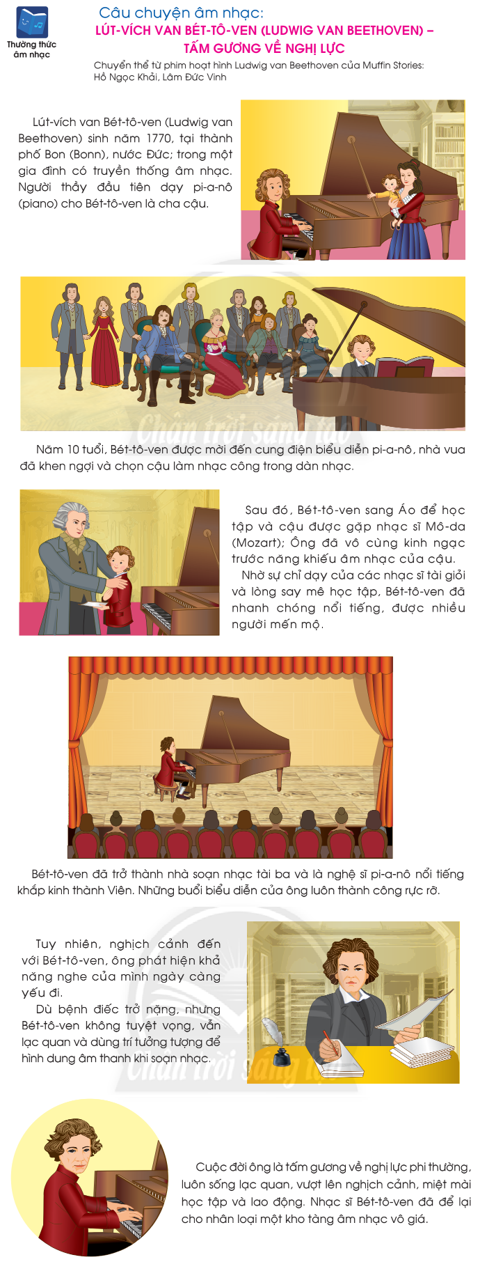 * Qua câu chuyện, em học được đức tính: luôn sống lạc quan, miệt mài học tập và lao động và vượt lên nghịch cảnh bản thân từ nhạc sĩ Beethoven.