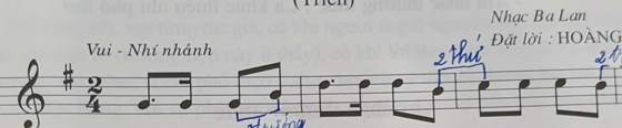 Tuy nhiên câu A tiết tấu có những chỗ móc giật tạo nhịp điệu vui tươi nhí nhảnh hơn so với câu B thì giai điệu đều đều hơn với những nốt móc đơn.
