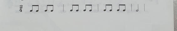 Thể hiện âm hình tiết tấu sau đây và so sánh với âm thanh tiết tấu 4 nhịp đầu trong bài TĐN số 1