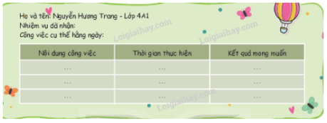 Học sinh thực hiện nhiệm vụ theo kế hoạch đã đề ra dựa theo mẫu:
