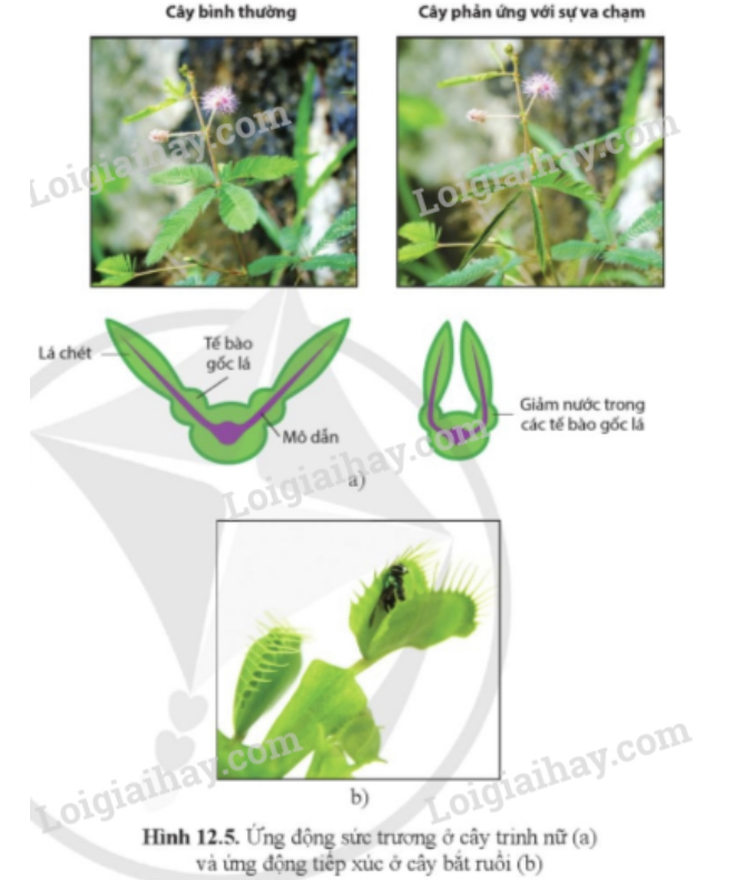 • Ứng động không sinh trưởng: là những vận động thuận nghịch do sự biến đổi sức trương nước của cơ quan, bộ phận đáp ứng hoặc do xuất hiện lan truyền của kích thích trong các tế bào, mô chuyên hóa dưới tác dụng của tác nhân cơ học, hóa học