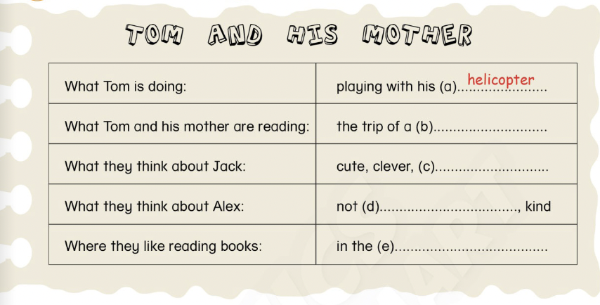 a. helicopter b. young boy c. naughty d. friendly e. garden