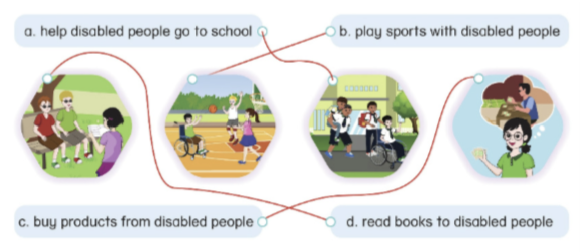 (Bạn làm gì để giúp đỡ người tàn tật? Viết.)