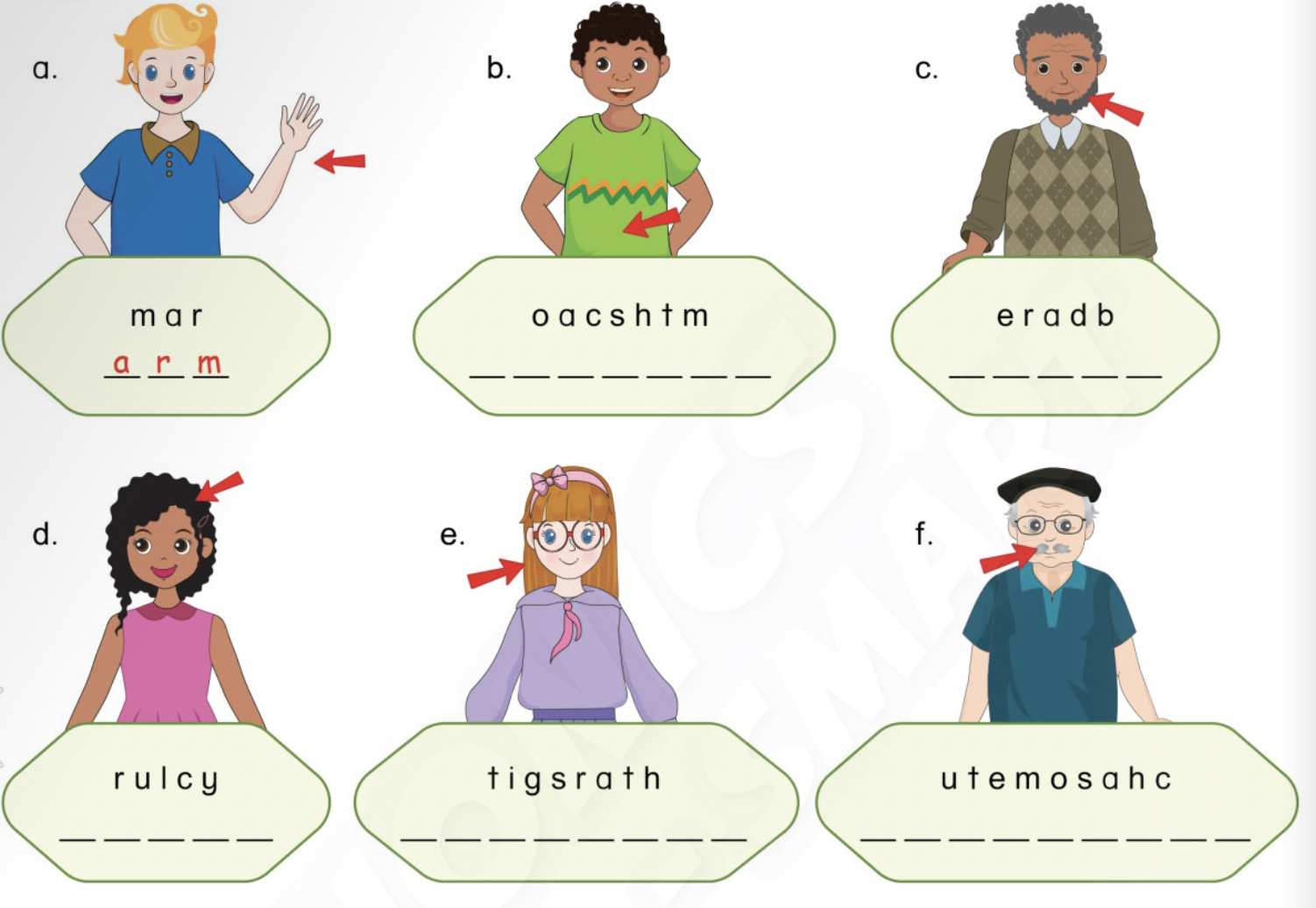 Choose and write. Read, draw and say. Listen and complete. Read and match. Unscramble the words.