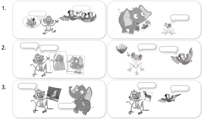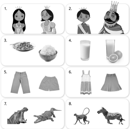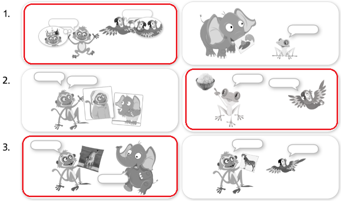 2. Listen. Look and circle. Say.