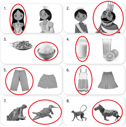 1. Listen. Look and circle.