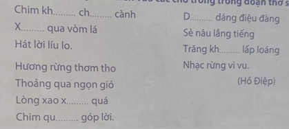 Hãy tìm vẫn có yê và ya để điền vào các chỗ trống trong đoạn thơ sau: