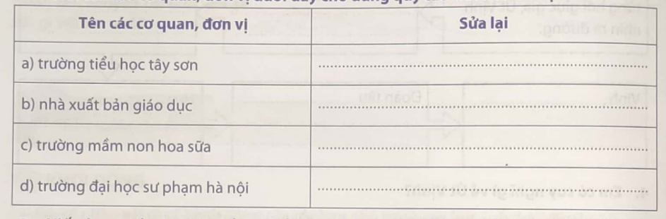 Viết tên các cơ quan, đơn vị dưới đây cho đúng quy tắc viết hoa đã học: