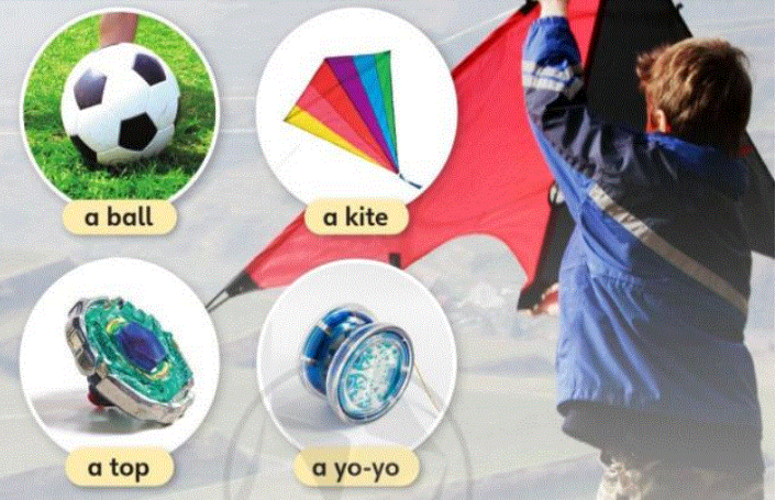 *Vẽ bất kì bất kì đồ chơi nào mà bạn thích. (yo-yo, top, kite, ball…)