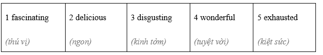 Các từ “interesting” và “fascinating” diễn tả sự thích thú mang nghĩa tích cực còn “disgusting” diễn tả cảm xúc của con người trước điều gì đó.