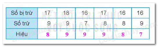 16 – 8 = 8                          17 – 9 = 8                              16 – 9 = 7