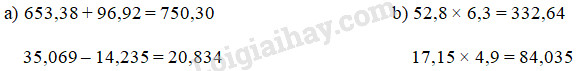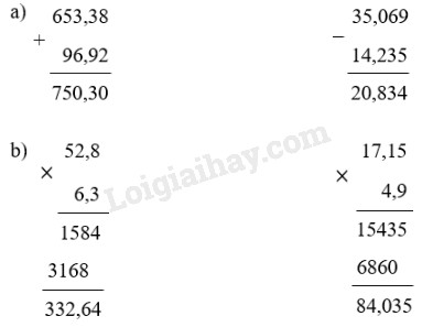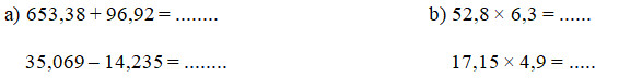 Đặt tính rồi tính theo các quy tắc đã học về phép cộng, phép trừ, phép nhân số thập phân.