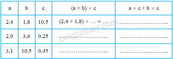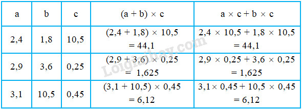 Nhận xét : (a + b) × c = a × ….. + b × ….. hay a × c + b × c = (a + …..) × …..