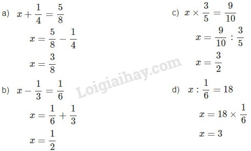 \(a) \; \displaystyle x\, + \,{1 \over 4} = {5 \over 8}\)