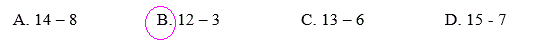 A. 14 – 8                    B. 12 – 3                    C. 13 – 6                    D. 15 – 7