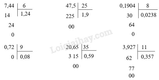 – Tiếp tục chia với từng chữ số ở phần thập phân của số bị chia.