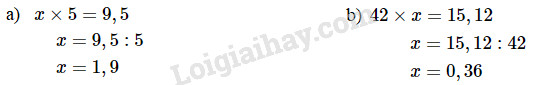 \(a) \;x \times 5 = 9,5\)                                        \(b)\;42 \times x = 15,12\)