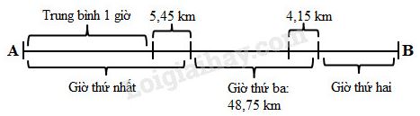 Câu 7. Một ô tô đi từ A đến B hết 3 giờ. Giờ thứ nhất đi nhiều hơn mức trung bình của cả 3 giờ là 5,45km. Giờ thứ hai đi ít hơn mức trung bình của cả 3 giờ là 4,15km. Giờ thứ ba đi được 48,75km. Hỏi quãng đường AB dài bao nhiêu ki-lô-mét?