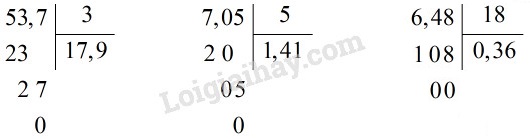 – Tiếp tục chia với từng chữ số ở phần thập phân của số bị chia.