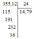 Thử lại : \(14,79 × 24 + 0,16 = 354,96 + 0,16 \)\(= 355,12.\)