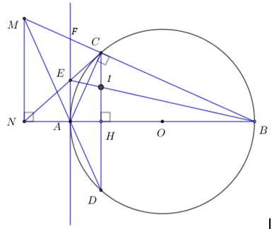 \( \Rightarrow \) Tứ giác \(MNAC\) là tứ giác nội tiếp (Tứ giác có tổng hai góc đối bằng 1800).’