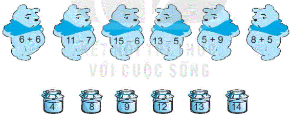 Tính nhẩm kết quả phép tính ghi trên mỗi chú gấu rồi nối với số tương ứng.